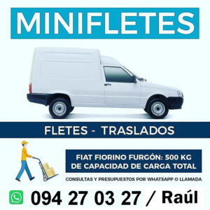 Ofrezco servicio de fletes y traslados en camioneta Fiat Fiorino, ideal para mudanzas pequeñas, traslado de muebles, electrodomésticos, encomiendas y cargas livianas. Trabajo con responsabilidad, puntualidad y cuidado en cada traslado, asegurando que tus pertenencias lleguen en perfectas condiciones. Me adapto a diferentes horarios y necesidades, brindando un servicio ágil, confiable y a buen precio. Consultas sin compromiso.