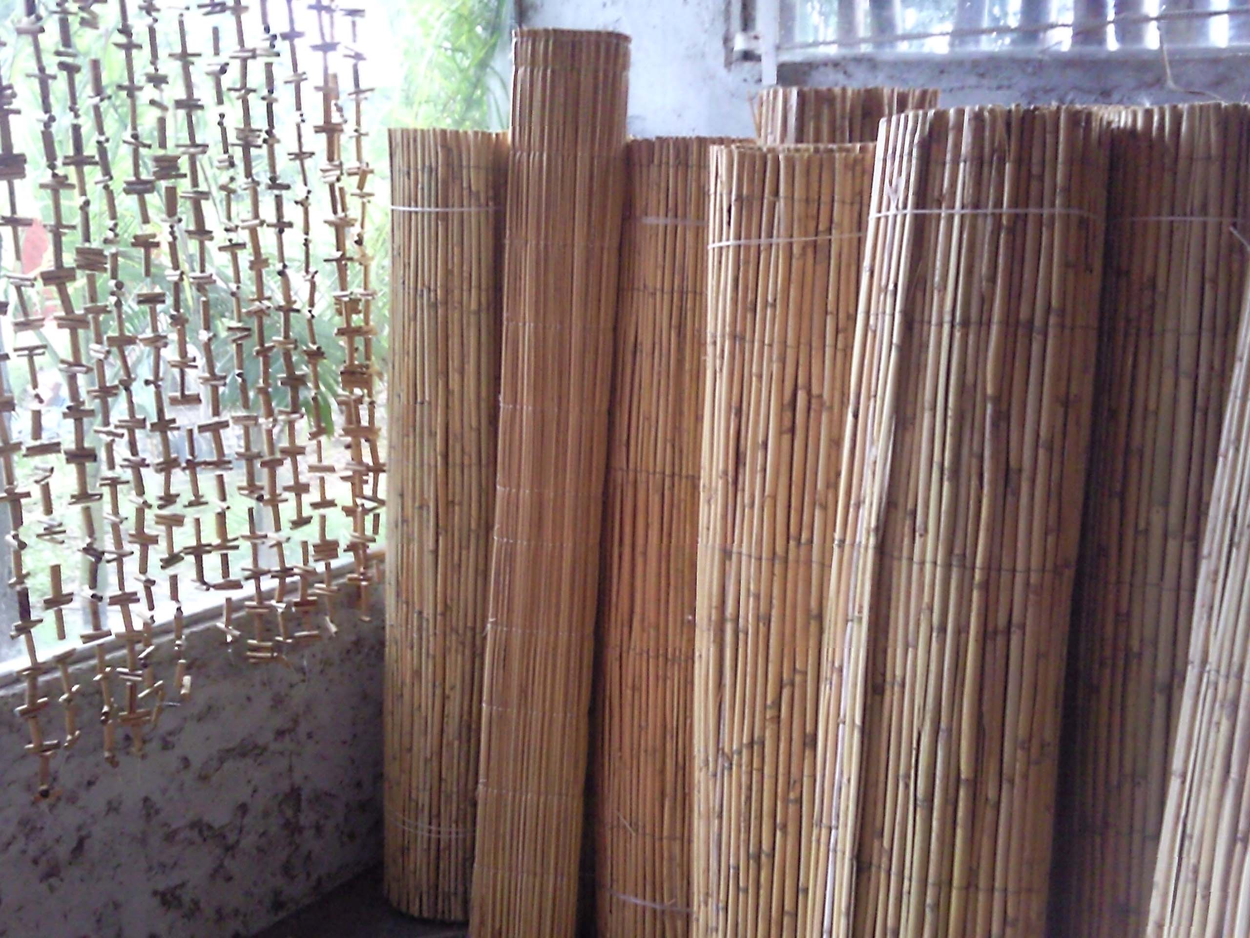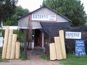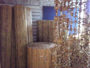 Esteras de caña, entrelazadas con alambre, en anchos de 1,50 m, 1,80 m y 2 m, con largo de 5 m.